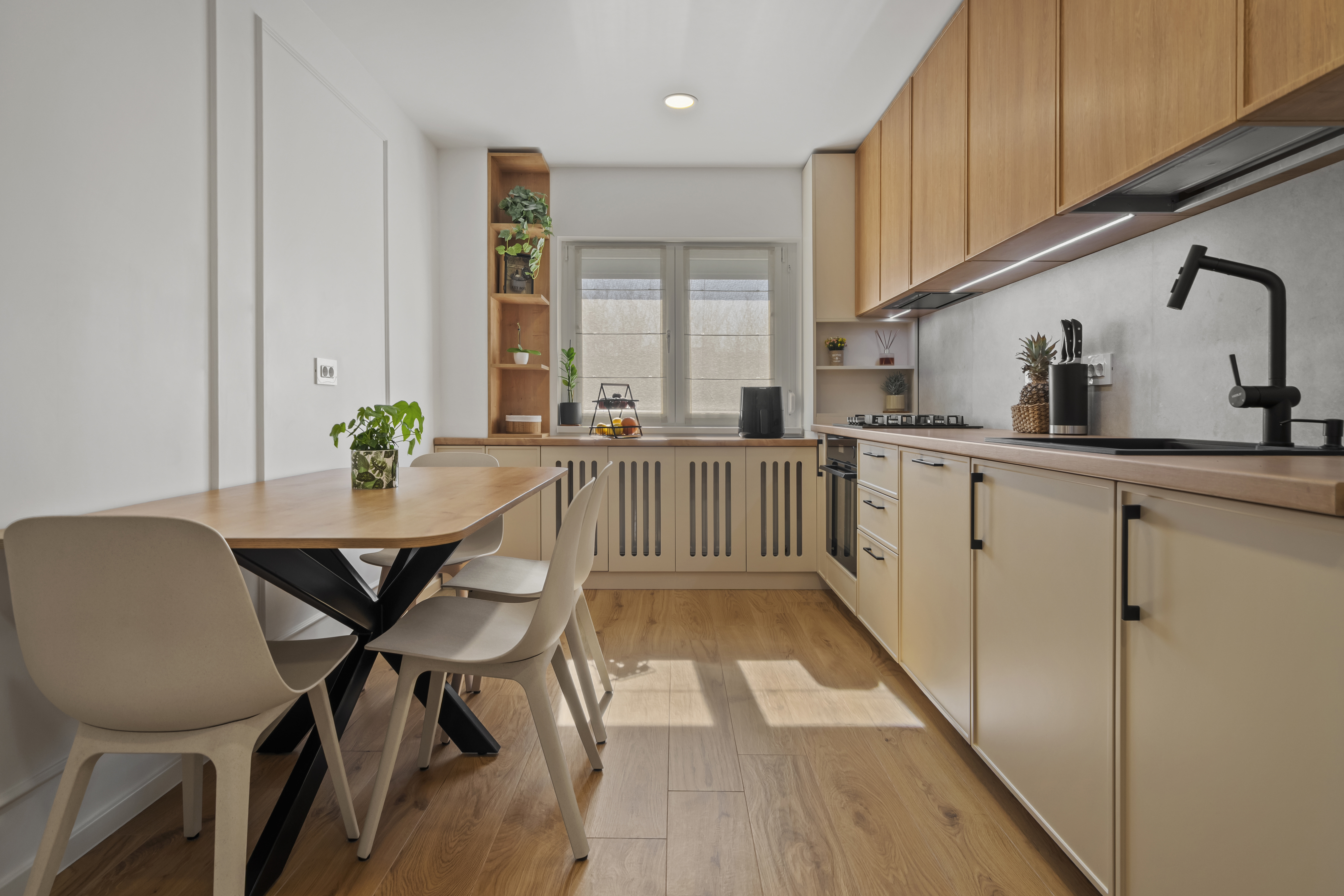 Acest proiect a avut ca obiectiv transformarea unui apartament de 3 camere într-un spațiu modern, aerisit și confortabil, care să răspundă atât nevoilor funcționale, cât și celor estetice. Am ales o compartimentare deschisă, în care livingul și bucătăria formează un open space generos, ideal pentru socializare și petrecerea timpului în familie.